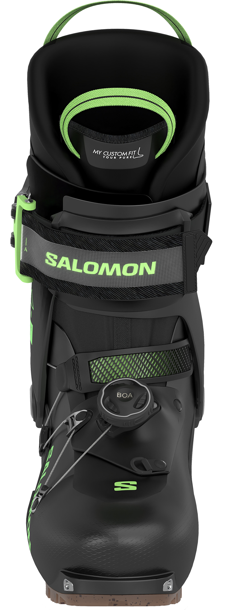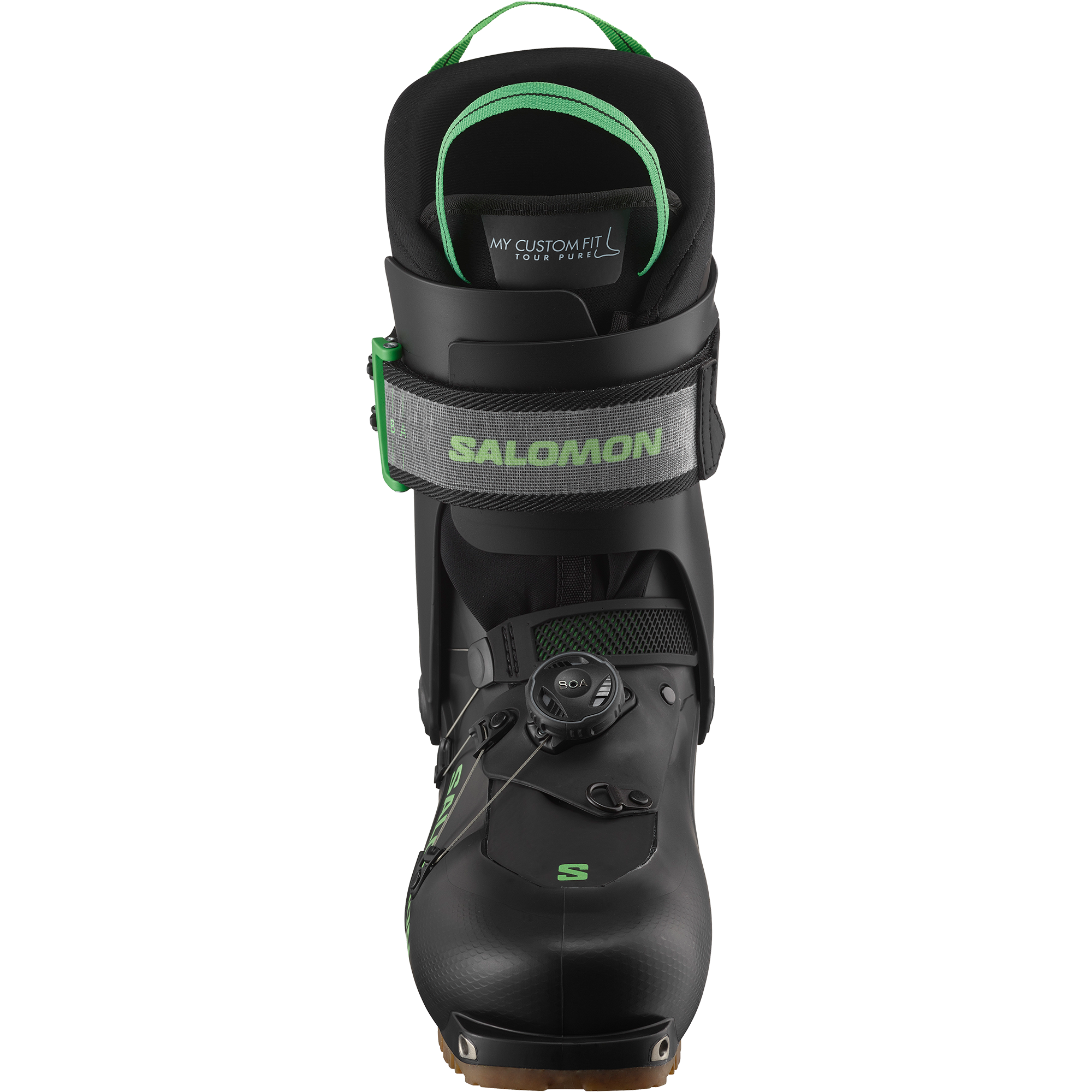 Połączenie systemu Boa® Fit z mikroregulacją oraz strategicznie usytuowanego górnego paska tworzy innowacyjny pas skiturowy Touring Belt marki Salomon, który umożliwia przystosowanie dopasowania i niezrównane trzymanie pięty.