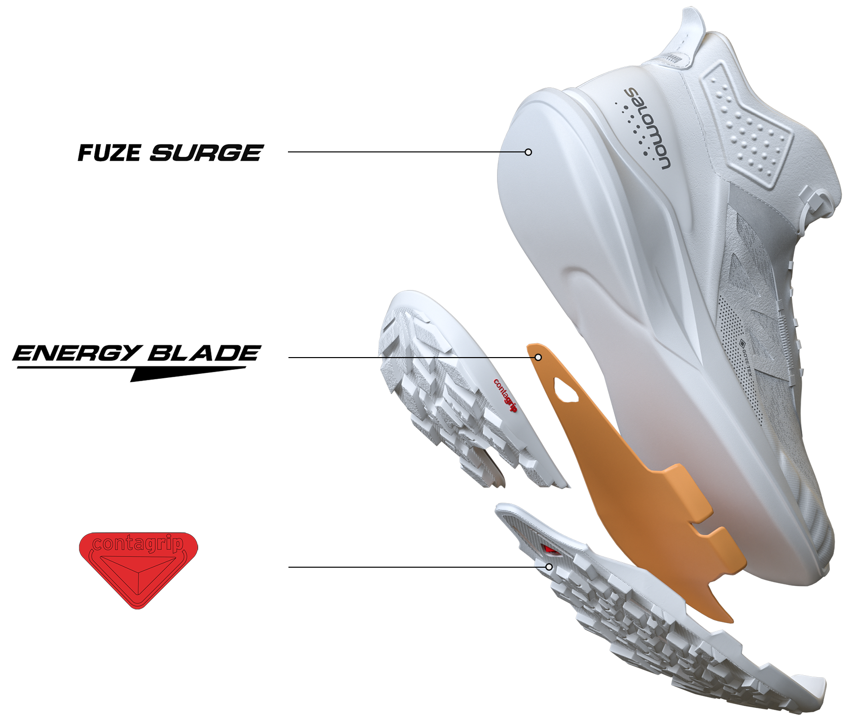 Stworzona przez naszą markę w oparciu o lata doświadczenia w biegach w terenie pianka Fuze Surge oferuje najwyższej klasy oddawanie energii i amortyzację.