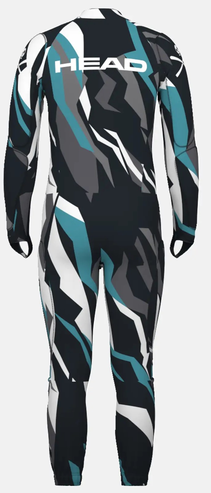 Aby zapewnić ambitnym zawodnikom oryginalny styl na trasach zawodów, projektanci HEAD pracujący nad wzornictwem gumy RACE SUIT UNISEX zainspirowali się obrazem „Morze lodu” niemieckiego malarza romantycznego Caspara Davida Friedricha. Nowy efektowny nadruk przedstawia wzorowane na obrazie piętrzące się bryły lodu. Sportową estetykę nadają gumie logo HEAD i kultowy symbol World Cup Rebels. Tę zawodniczą gumę wykonano w Europie według najwyższych standardów produkcji. Jej opływowa sylwetka i elastyczny materiał gwarantują pełną swobodę ruchów ułatwiającą walkę o maksymalną szybkość. Dodatkową ochronę zapewniają wyjmowane usztywnienia na ramionach i przedramionach, udach, kolanach i w górnej części goleni.