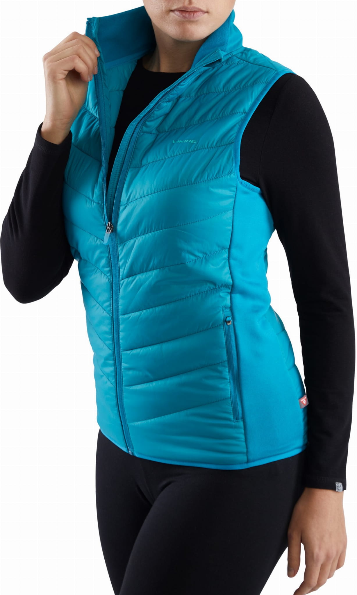 Hybrydowa kamizelka damska Becky Pro Vest to następca znanego modelu w kolekcji Viking - Becky Vest. Nowa odsłona produktu została wzbogacona o dodatkowe atuty, takie jak zastosowanie materiału zewnętrznego, który w 100% pochodzi z recyclingu. Dodatkowo panele boczne zostały wykonane z markowej dzianiny Polartec Power Stretch, która cechuje się niezwykłą elastycznością i wysoką odpornością na ścieranie i peelingowanie. Wewnątrz niezmiennie dogrzewa ocieplina Primaloft Silver Active 100g, która chroni przed przenikaniem chłodu i wiatru do wnętrza odzieży, jednocześnie pozwalając skórze na swobodne oddychanie. Ocieplina Primaloft zapewnia komfort termiczny, jest miękka i schnie szybciej od puchu. Kamizelka Becky Pro Vest sprawdzi się idealnie zarówno w codziennym, miejskim użytkowaniu, a także podczas wymagających aktywności sportowych dzięki użyciu topowych technologii - Polartec i Primaloft.