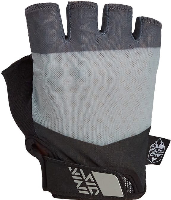 Męskie rękawiczki rowerowe z lekkiego materiału z poduszkami żelowymi po wewnętrznej stronie dłoni. Posiadają zapięcie na rzepy i pętle ułatwiające ściąganie.