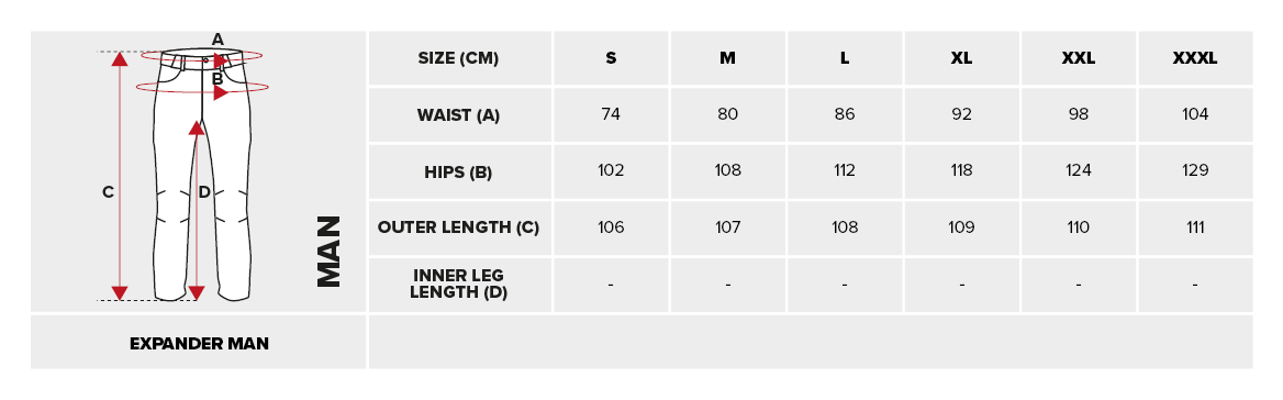 TABELA ROZMIARÓW SPODNIE EXPANDER MAN
